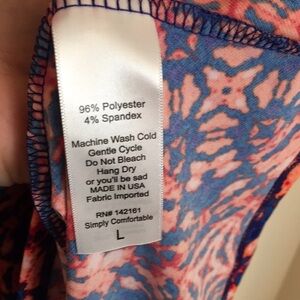This is a brand lularoe maxi skirt. It is a little bit on the longer side but the waistband folds over so you can adjust the length. This one has a blue toned background with unique peach and pink print on it. Very eye catching. Price firm. Thanks for looking.