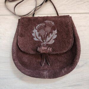 L & M Highland Outfitters Dark Brown Suede Leather Thistle Scottish Crossbody