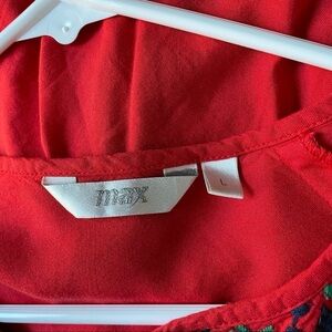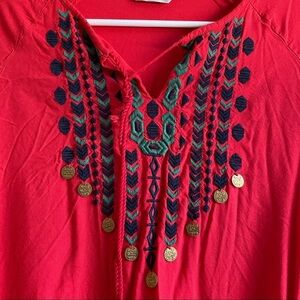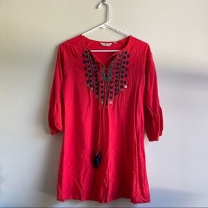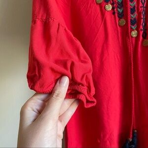 L- MAX Red Mini Dress Embroidery Floral Design Bright Colorful Cultural Boho