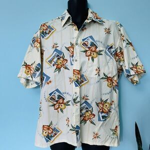 L Men's CAMPIA MODA 100% Cotton Vintage Postcard Village Floral Hawaiian Shirt. Very cool shirt. Nice Condition.