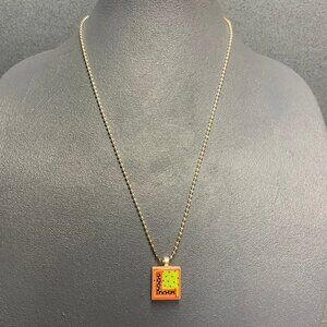 "L" Monogram Pendant Necklace 23 In As Is Wooden Game Tile Silver Ball Chain
