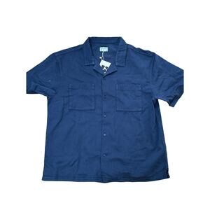(L) NWT $100 Frank & Oak The Pocket Camp Collar Shirt in Midnight Navy