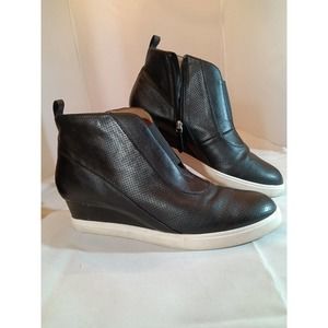 L Paolo Size 12 Med Wedge Sneaker Black Leather Platform Shoes Ankle Zip Bootie