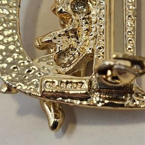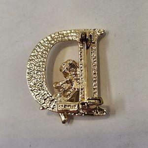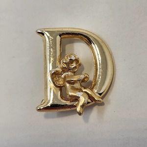 L Razza gold tone angel cherub letter initial " D " brooch lapel pin. Vintage Fashion Jewelry Symbol Name Small