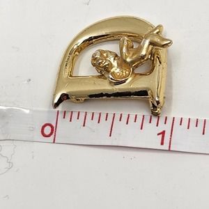 L Razza Angel Cherub Letter Initial D Brooch Pin Vintage Jewelry Gold Tone