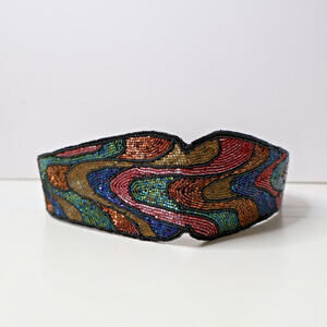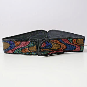 L Regal Beaded Cummerbund Belt M Womens Vtg 80s Hook & Loop Rainbow Goth Fairy
