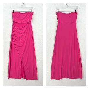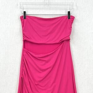 L SPACE Corsica Dress Womens XL Pink Bougainvillea Strapless Cut Out Midi Beach