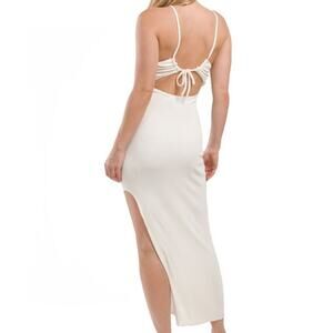 L SPACE Renata Open Tie-Back Halter Neck High Slit Cover-up Maxi Dress M White