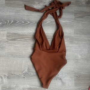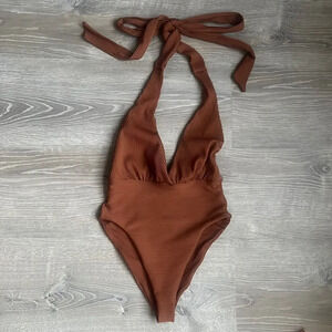 With the Allegra one piece, the choice is yours. From its daring deep V-neckline to flattering high leg cut, this classic coverage bodysuit is designed with extra long halter ties and can be worn multiple ways. REPREVE rib fabric is truly eco-friendly, made from recycled materials including used plastic bottles.