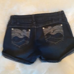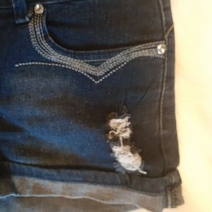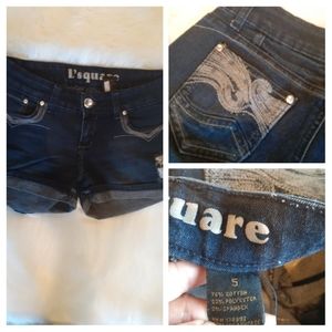 L SQUARE DISTRESSED JEANS SHORT DARK WASH BACK EMBROIDERED POCKETS WOMEN'S SZ 5
