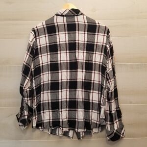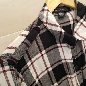 {L} Sanctuary Plaid Button Down Shirt Maroon Black White