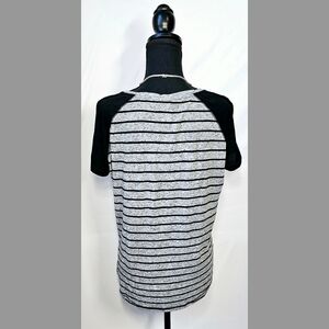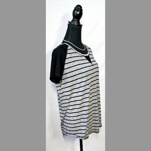 Grey Black Stripe T-shirt Stretch Material Short Sleeve Size L
