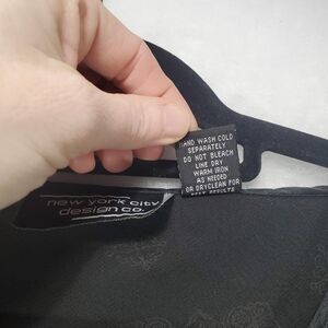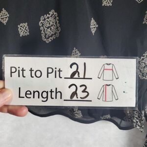 size Large, flat measurements in photo #3, cut on bias so has give in material. Gorgeous silk bell sleeve blouse with surplice wrap top falling below the waist at babydoll style length. Lined bodice, sleeves are sheer, no stains or flaws noted.