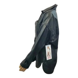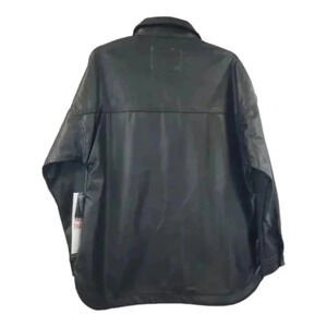 This is a super trendy, stylish, multipurpose Shacket! Can be worn layered as a Jacket OR as a shirt for a unique and fashionable outfit. Pairs well with just about anything and can be dressed up or down. This is meant to be fit loose or an "oversized look" so if you are looking for a tighter fit please size down. This is new with tags and has been stored and comes with a dust cover. This is Pleather/Faux Leather.