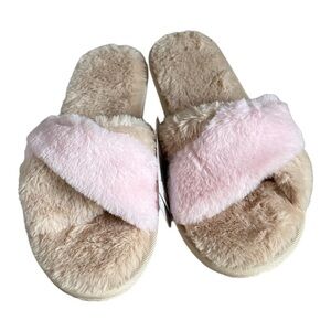 L Space Anthropologie Fluffy Cloud Crisscross Sandal Slippers Size M/L NWT Pink Tan