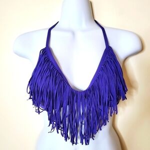 Size L purple bikini top from L Space in their audrey fringe style. This bikini top can be worn with either the fringe over the bust or under (see pictures for examples).