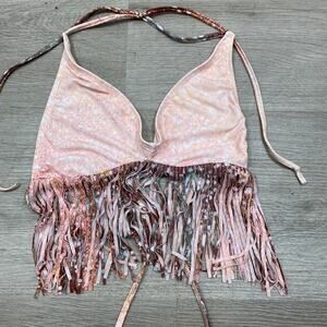 L Space Audrey Fringe Bikini Top Women's S Festival Boho.