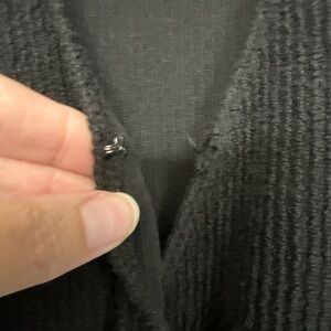 There is a flaw at the hook and eye closure at the chest area, the hook is there but the loop that it hooks onto has come undone. Please see photos for more detail.