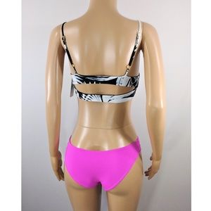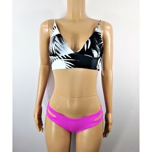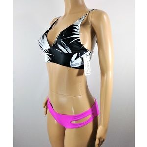 L Space Black & White Floral top, Pink Bottom 2Pc Swimsuit