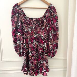 L Space Cassidy Long Sleeve Square Neck long Sleeve Mini Dress In Pink XS NWT