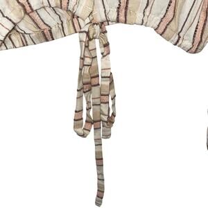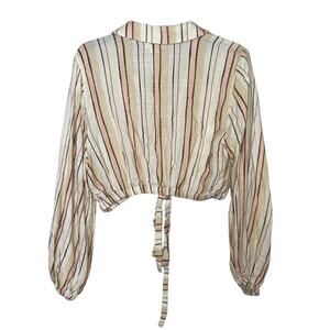 L Space Cropped Button Up Top Wrap Blouse Balloon Sleeve