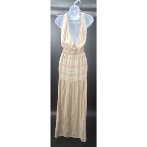 L* Space Emma Swim cover up women's maxi dress beige stripes Size XL resort wear