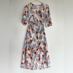 L Space Kellen Cover Up Dress Midi Wrap Style Blue White Orange Sundress S