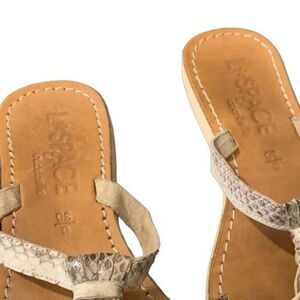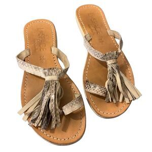 L Space Leather Fringe Boho Sandals Tan Beige Tassels Snake Womens Size 6