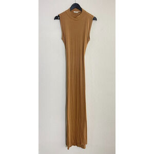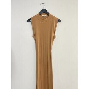 L Space Maxi Dress M Chandler Ribbed Long Sleeveless Mockneck Tan Camel Boho