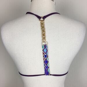 L* Space Purple Diamond Print Swim Top Large tie front chain back Pre owned good condition eleven8 -0011 ppkinv 7os