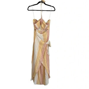 L Space Solana Cover-Up Women's Halter Wrap Dress Cream, Yellow, Pink Sz XL NWT