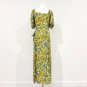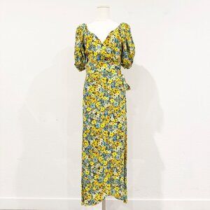 L Space Talia Puff Sleeve Ruffle Trim Tie Midi Wrap Dress Boho Peasant Medium