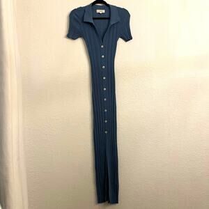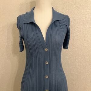 L Space Undertow Ribbed Dress Small Linen Blend Button Front Knit Blue Beachy