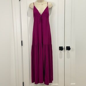 L Space Victoria Maxi Dress V Neck Tiered XS Raspberry New Beachy Vacation Chic