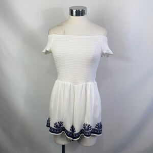 L Space White wโBlue Embroidered Trim Romper