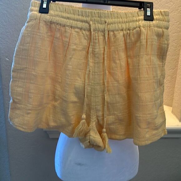 L Space Womens Large Pull On Elastic Waist Shorts Yellow Textured Tassels NWT