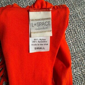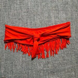 L Space Women's Solid Orange Fringe Bandeau Bikini Top Size Small Nylon, Spandex