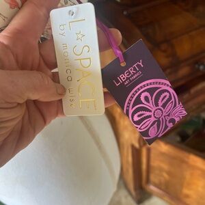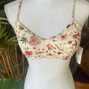 L Space Bra Large NWT crochet back cream and pink floral decorative. Lightly padded. Pull over style. Removable pads.