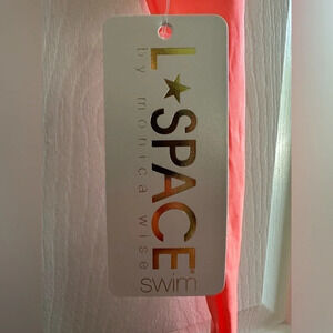 L Space l*space ELECTRIC CORAL Dolly Knotted Fringe Bateau Bikini Top Neon Sexy