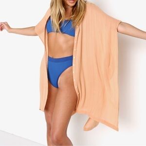 L Space Anita Cover Up Toasted Chic Tan Button-Down