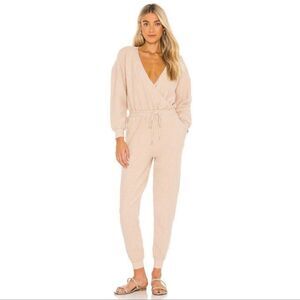L Space Coastin' Sandstone Light Tan One Piece Slim Jogger Leg Ribbed Jumpsuit L
