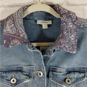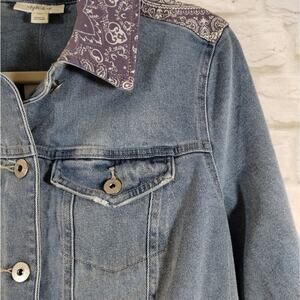 L Style & Co Blue Bandana Jean Jacket Roses Light Wash Trucker Denim NWT PS details: