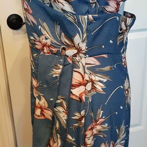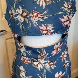 L & T Blue Sleeveless Flowy Open Back Ruffle Bottom Floral Print Dress
