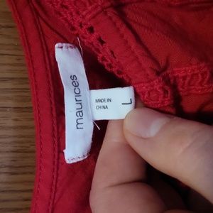 Bright red Maurices large flowy tank top. Great for summer adventures and would be super cute with jeans!