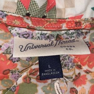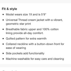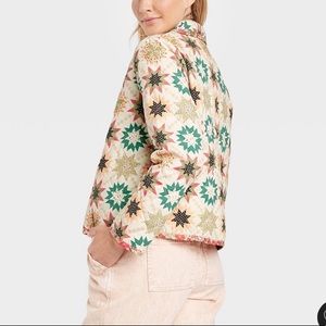 The Quilted Jacket from Universal Thread™ is a fun addition to your fall and winter collection. The long-sleeve jacket for women is made from a soft cotton-blend fabric with 100% cotton lining, and it features a quilted construction with a channel-stitched design for enhanced warmth with an elevated look. The allover printed pattern adds a touch of lovely flair to this casual-fit jacket that you can effortlessly throw over your favorite outfits, while the full-length button-loop closure on the front allows you to adjust the coverage and warmth. Plus, the functional diagonal pockets add a playful twist to the simple patch-pocket design.