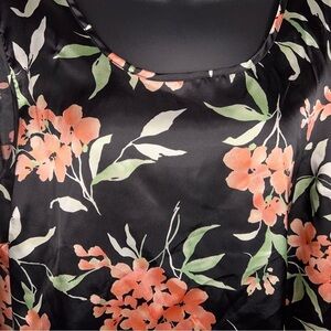 L VINTAGE CROFT AND BARROW BLACK PEACH FLORAL SATIN SLEEVELESS