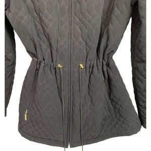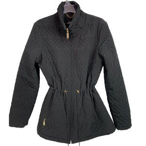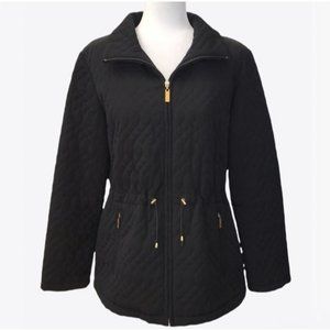 L Zip Ellen Tracy Black Quilt Winter Jacket 6486 Drawstring Waist Plush Lining