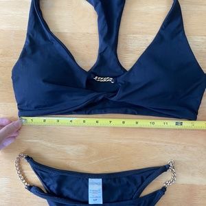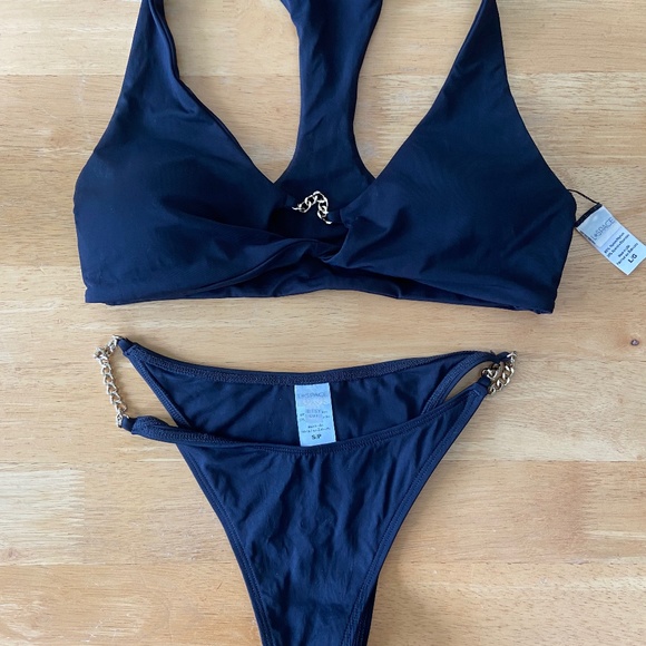 Cute set with gold chains. Only wore a 2-3 times. Still has tags. The top has 2 removable foam inserts.