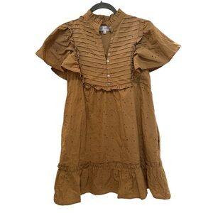 L1. Lost + Wander Womens Embroidered Above Knee Mini Dress Beige