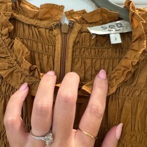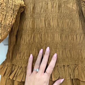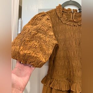 L1. Sea New York Renee Mustard Cotton Puff Sleeve Smocked Midi Dress Peasant